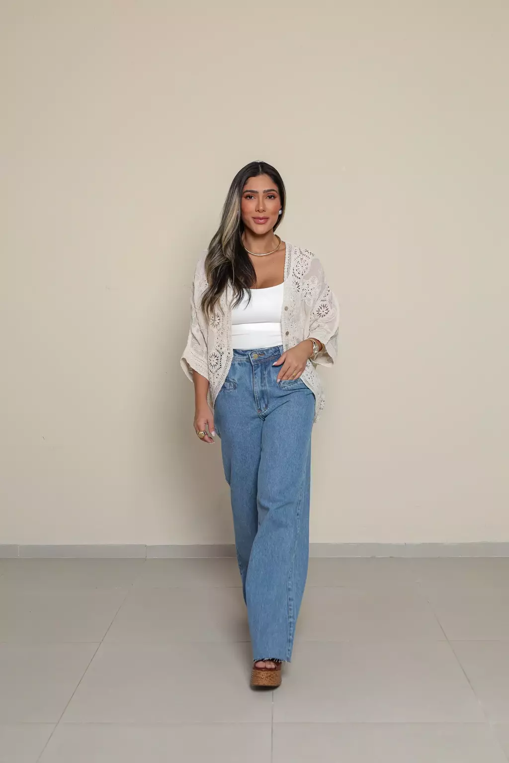 Disponível em duas opções clássicas, branco e off white, é versátil e fácil de combinar com jeans, alfaiataria ou saias leves, tornando-se perfeita para produções do dia a dia ou ocasiões especiais que pedem delicadeza.