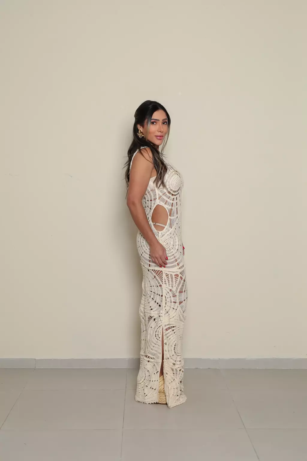 O Vestido Serena é a tradução perfeita de elegância e exclusividade. Confeccionado em crochê artesanal, seu desenho rico em detalhes cria uma trama sofisticada que valoriza o corpo com charme e sutileza.